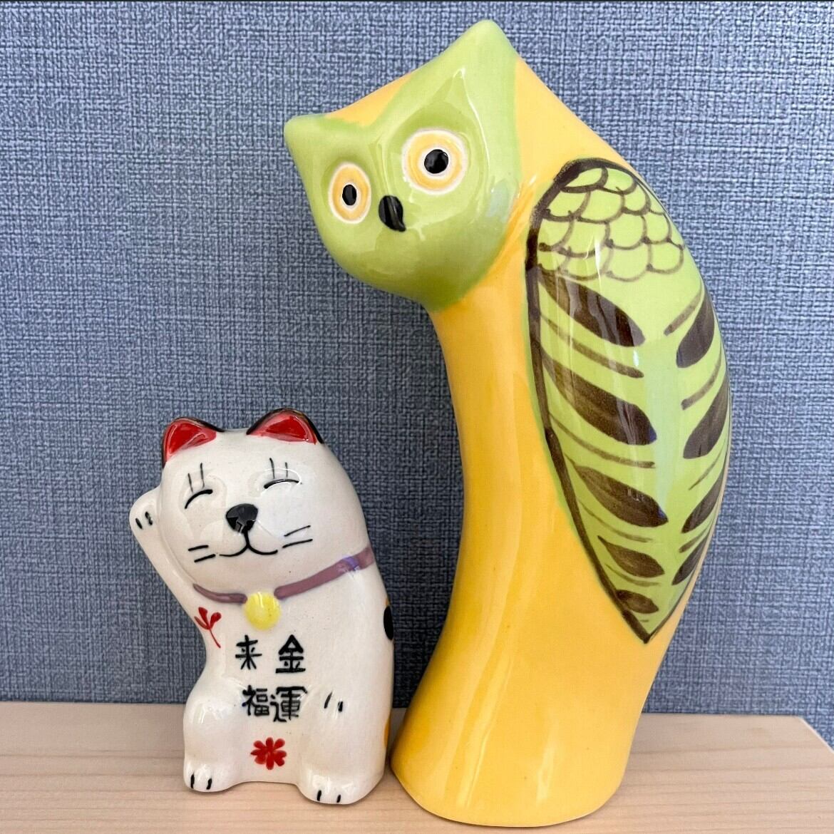 【ふくろう】招き猫と福【インテリア・置物】